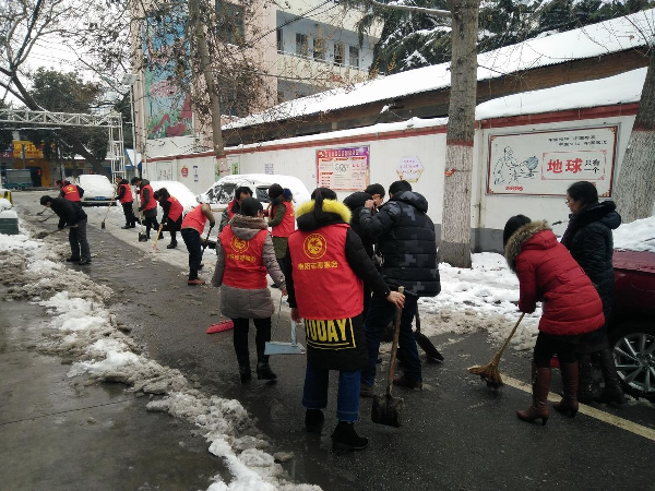 南阳市水利水电建设工程质量监督站志愿者服务队开展进社区铲雪活动
